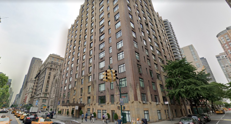 The real address is 55 Central Park West in Manhattan, a popular art deco inspired development, also famously used in the Ghostbusters movie. The average price of two bedroom apartments to sell over the last 2 years in the development is $2,466,667.