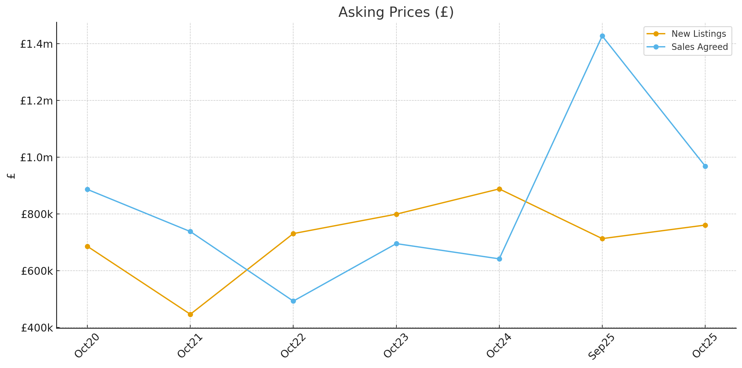 New listing average: £493,579 at £402 per sq ft