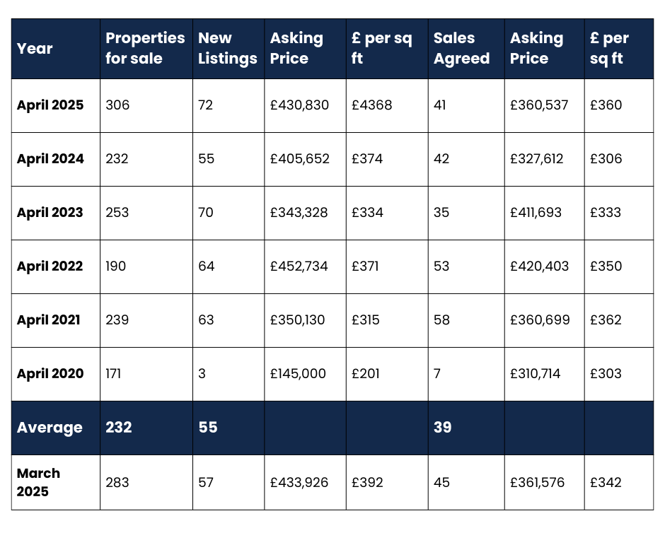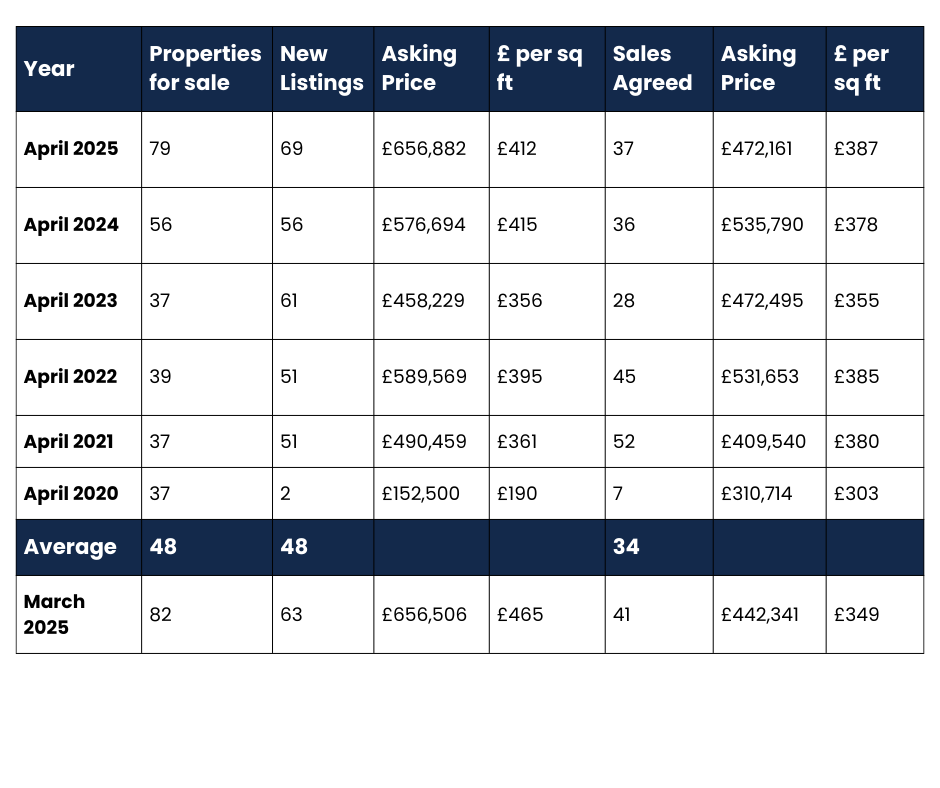 In B15, new listing prices (based on houses only) in April 2025 rose to an average of £656,882. This represents a 13.9% year-on-year increase, suggesting that sellers are entering the market with heightened expectations. However, agreed sale prices told a different story, falling to an average of £472,161, down 11.87% compared to April 2024. This gap between asking and achieved prices suggests increased resistance from buyers and signals a need for pricing strategies grounded in evidence rather than ambition.