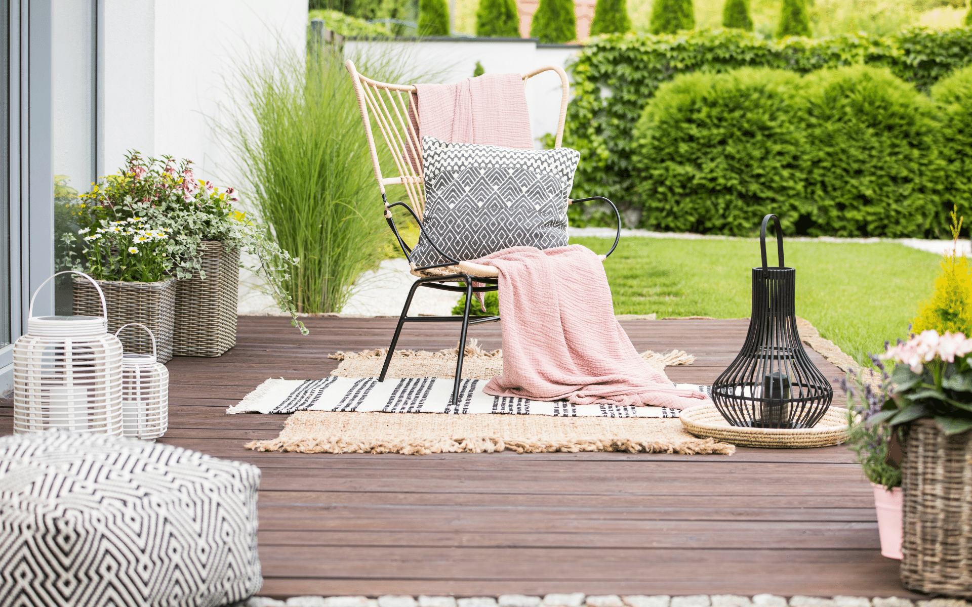When you are looking to decorate a room, you may have thoughtfully considered colours, textures, and zoning of furniture. The same principles should be used when you are looking to design your garden: have distinct areas, use different materials to add texture, and think about your planting for adding colour. Don’t forget those finishing touches such as cushions, lanterns and throws to bring your outside ‘room’ to life.