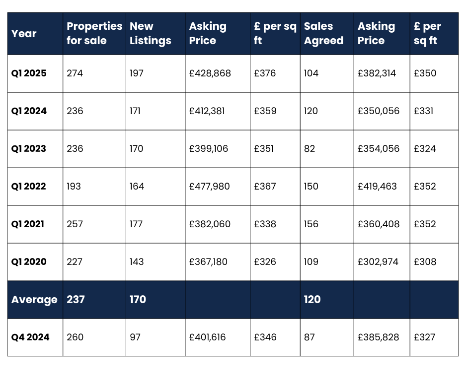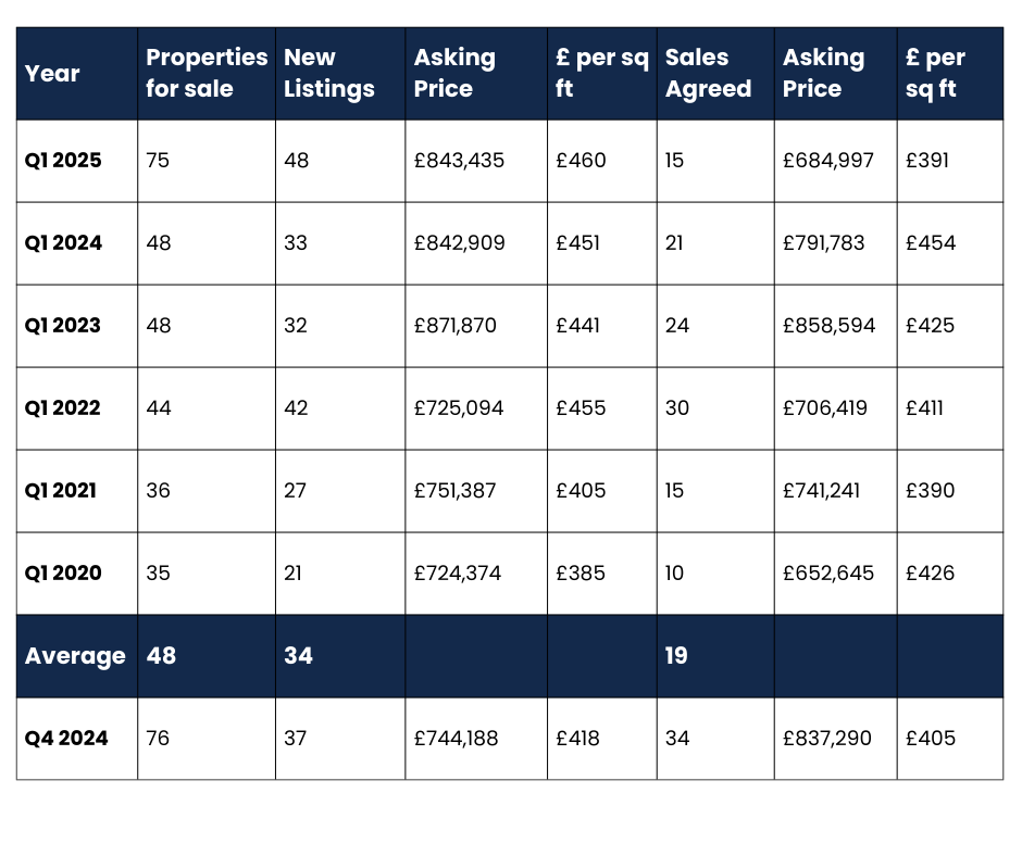 Q1 2025 saw high stock levels, robust pricing on paper, and mixed demand. Harborne is busy but increasingly competitive. Edgbaston, while prestigious, must realign expectations with reality.