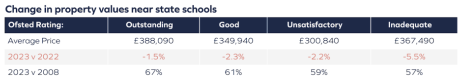 As a consequence, demand for homes near top-tier state schools will likely rise. As you will see from the above chart, property values near state schools with outstanding Ofsted ratings have unsurprisingly had the highest price growth in recent times and this might rise further with more buyers potentially searching for homes in areas that have outstanding schools with the upcoming addition of VAT to private school fees.